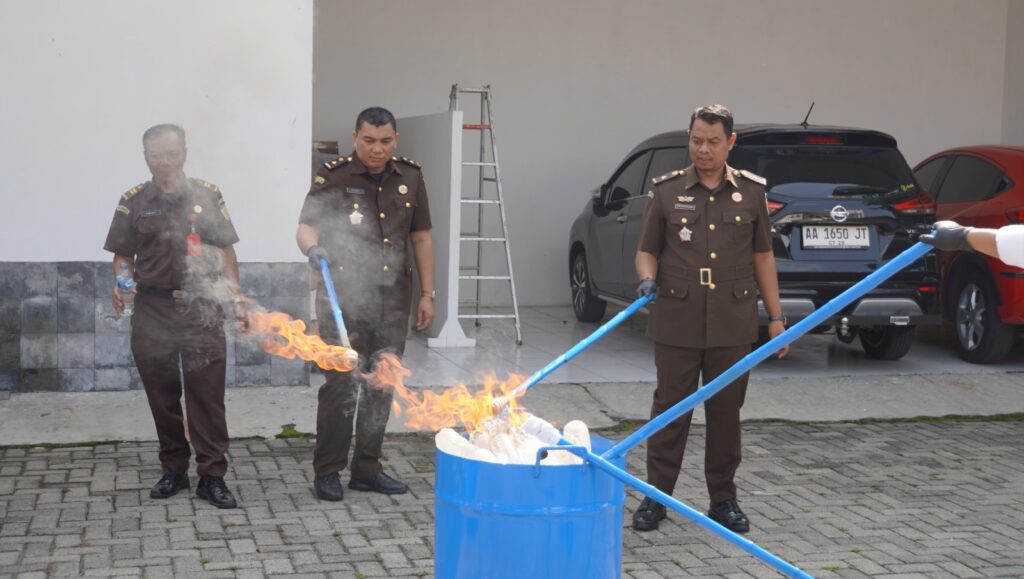 Bahwa pada hari Senin tanggal 20 Mei 2024 pukul 08.30 WIB bertempat di Halaman Belakang Kantor Kejaksaan Negeri Kabupaten Magelang telah dilaksanakan Pemusnahan Barang Bukti Perkara Tindak Pidana yang telah berkekuatan hukum tetap atau inkracht yang diikuti 10 orang.